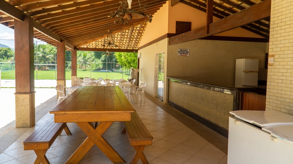 Em local privilegiado, possui boas mesas e cadeiras, churrasqueira, fogão industrial, geladeira, freezer, pia dupla com bancadas, armários, e banheiros.