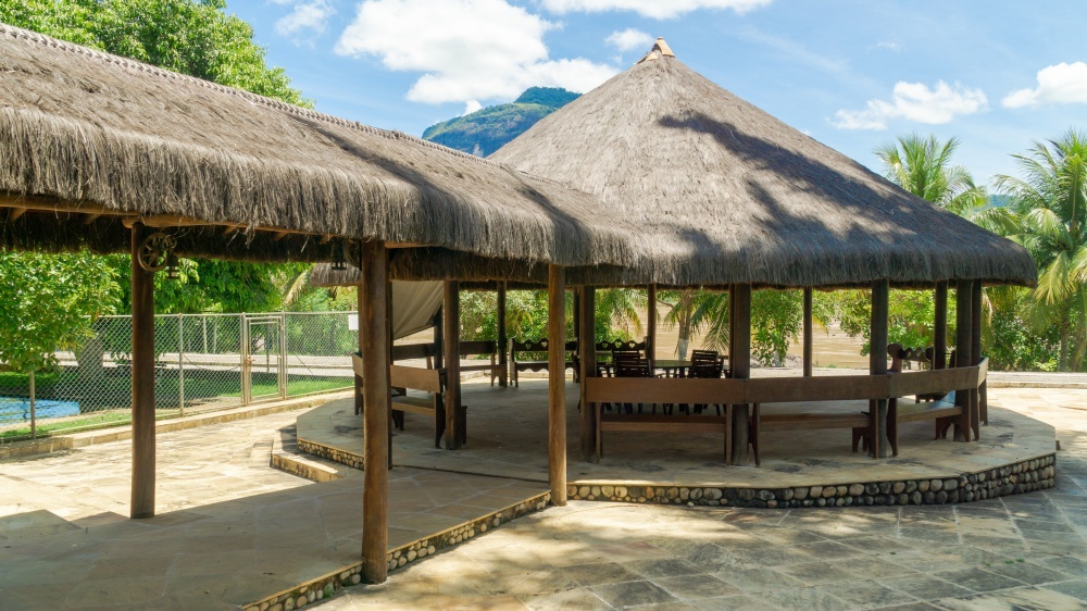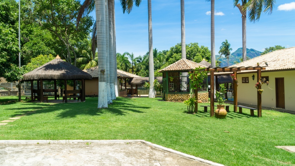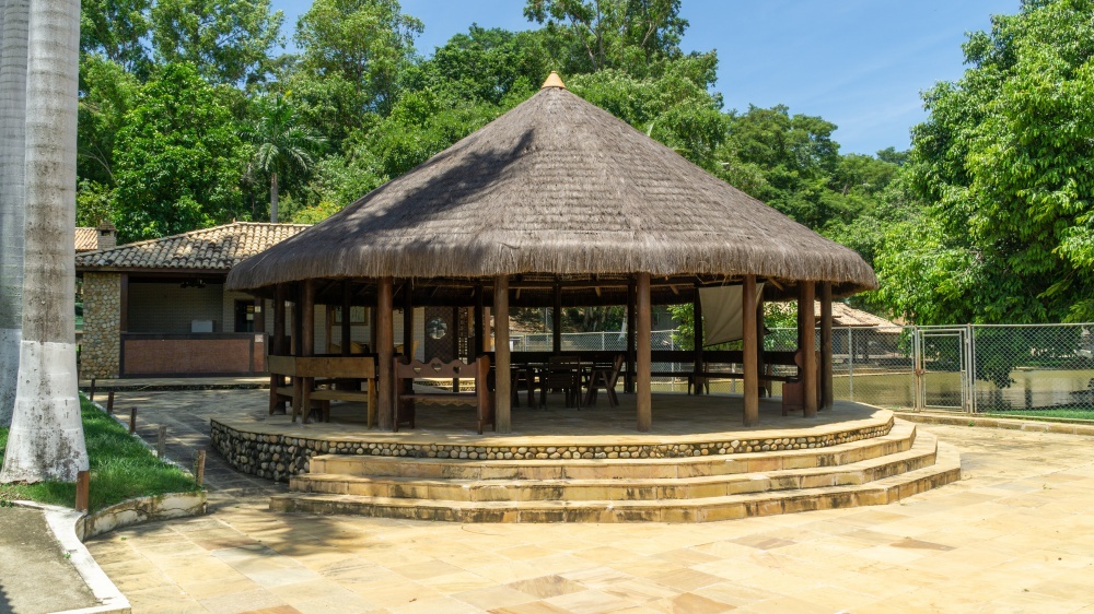 - Quiosque grande com cobertura de piaçava;