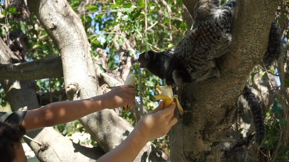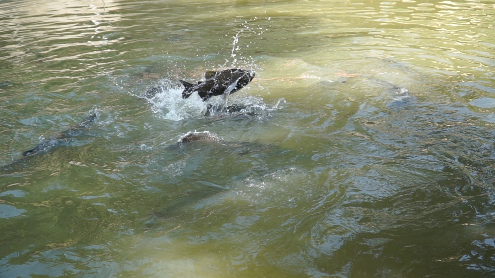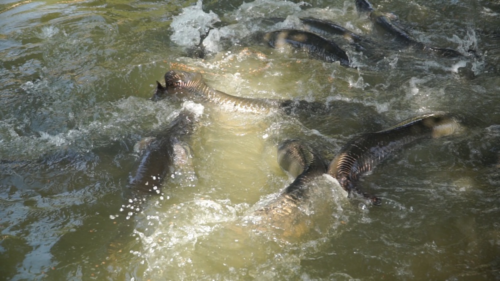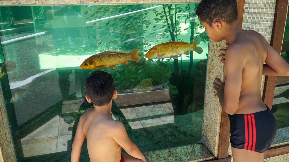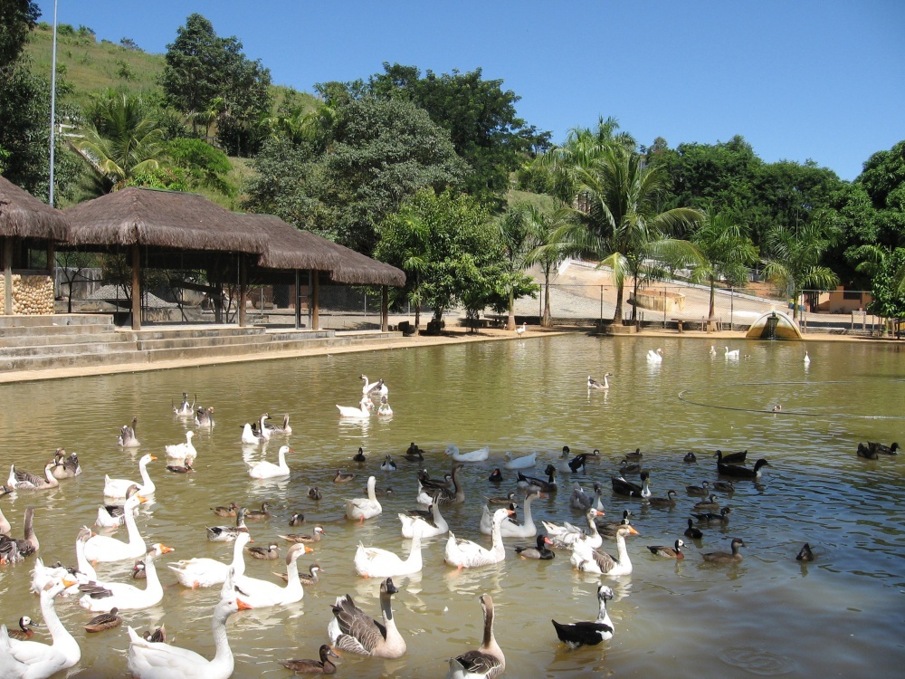 Pirarucus imensos convivem em harmonia com tambaquis, gansos e marrecos. A pesca é proibida, mas a hora da alimentação é um espetáculo à parte. Vale conferir.